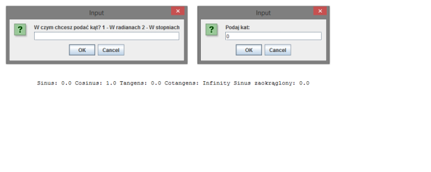 Program: obliczający wszystkie cztery podstawowe wartości trygonometryczne. A mianowicie: sinus, cosinus, tangens, cotangens, na…