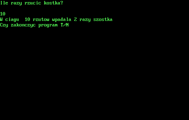 Program: zliczający ilość rzuconych szóstek spośród wszystkich rzutów. Użytkownik podaje ilość rzutów. Program dla…