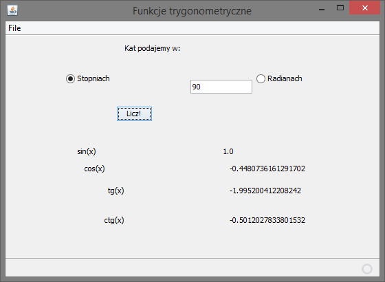 Program: obliczający cztery podstawowe wartości trygonometryczne.